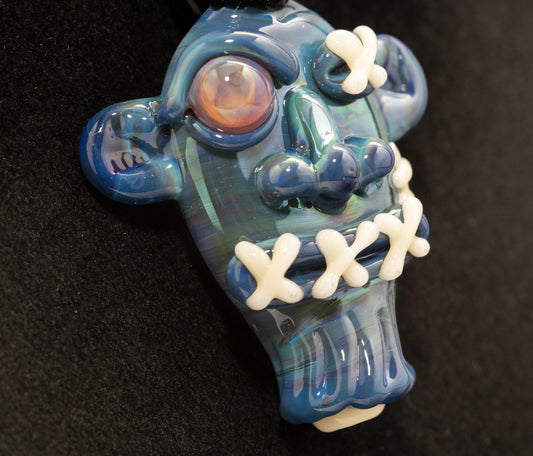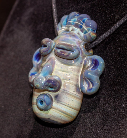 Glass Shrunken Head Pendant | Handmade Macabre Art Piece | Mysterious Relic Jewelry | Curio Cabinet Treasure for Dark Fantasy Lovers