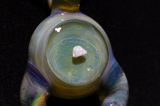 Green Envy Talisman with Encased Opal | Borosilicate Pendant Necklace | Sculpted Horn Pendant
