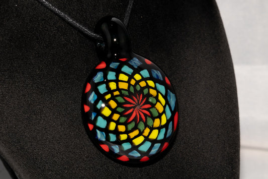 Unique Mandala Glass Pendant | Colorful Fillacello Design | Sacred Geometry Jewelry Art