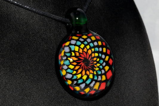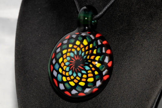 Artisan Mandala Pendant | Multicolor Glass Symmetry | Heady Psychedelic Wearable Art