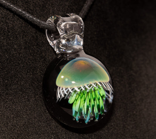 Artisan Jellyfish Pendant | Ocean-Inspired Glass Necklace | Handblown Glass Jewelry | Tropical Waters