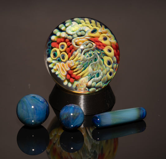 Ocean Floor Glass Marble Set | Four Piece Borosilicate Collection | Handblown Reef Art