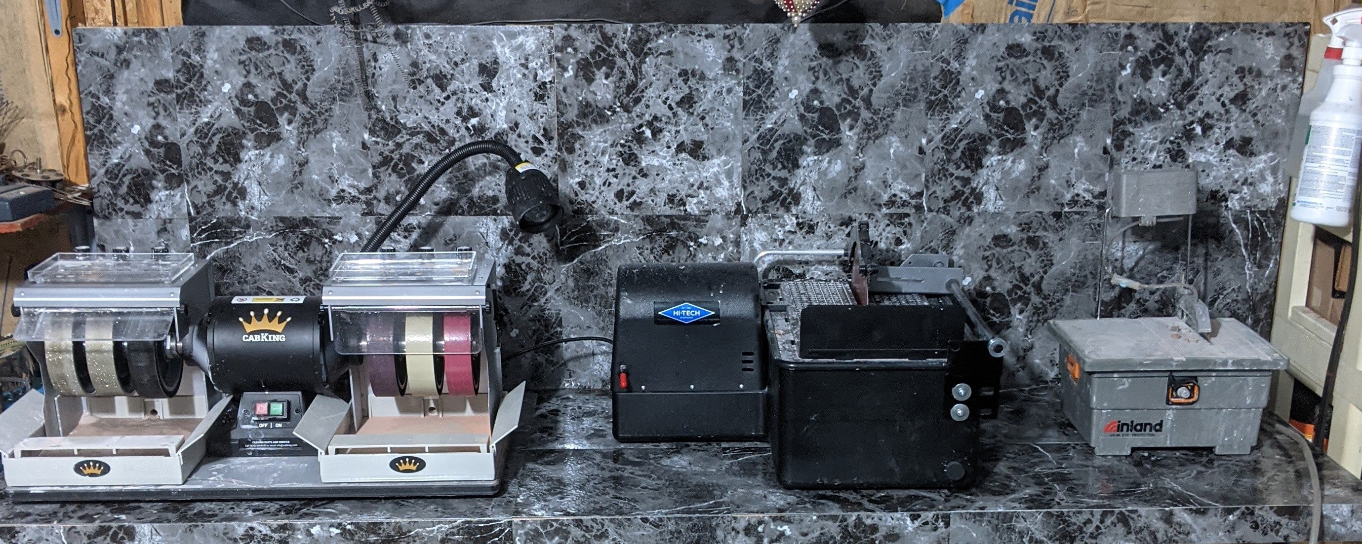 I cut slabs of rocks and carefully shape and polish them to be set in silver pendants. This same part of the studio is also where I create my faceted glass pendants, blending precision and artistry in every piece.