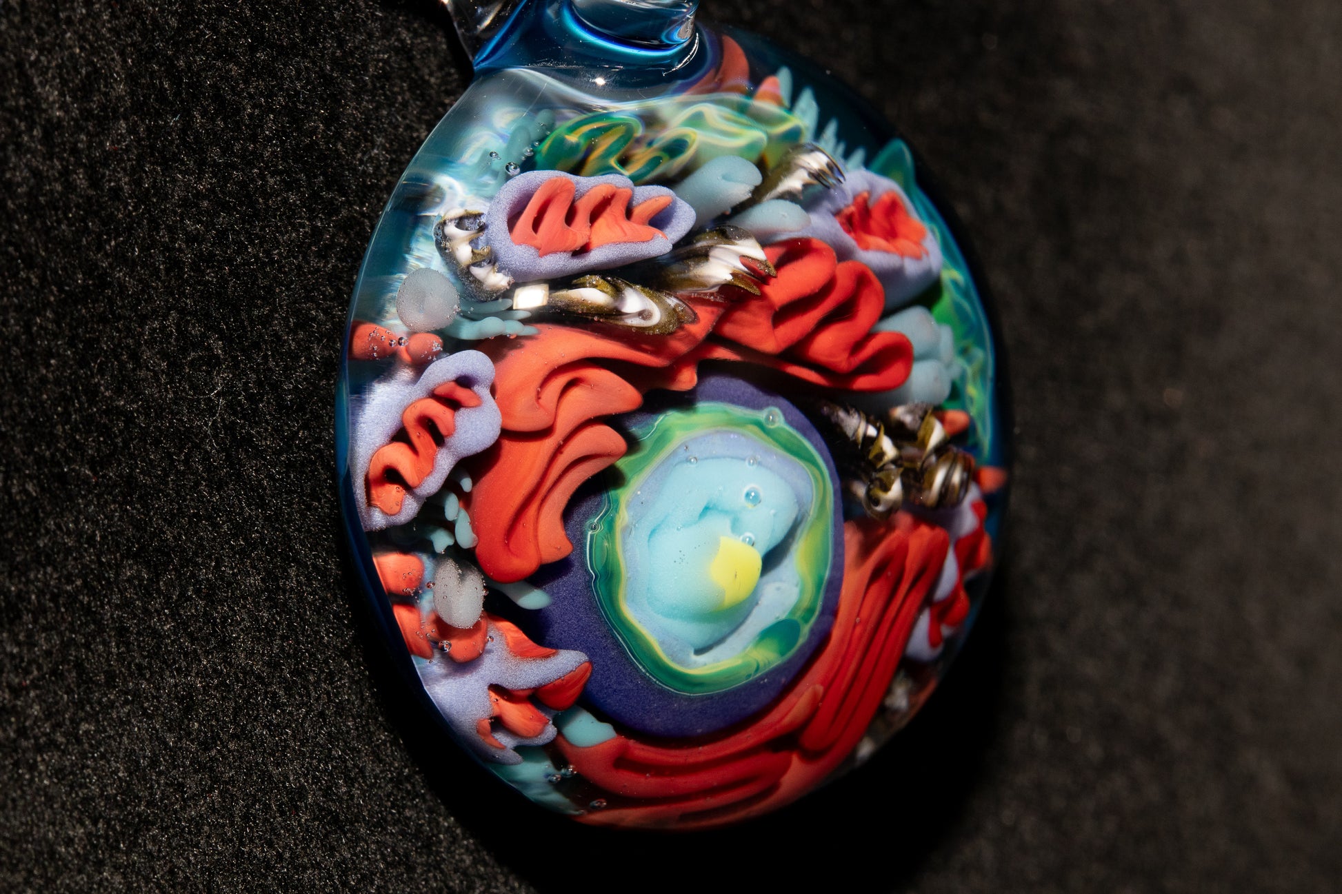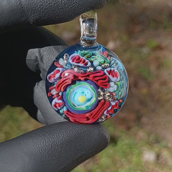 Have you ever dreamed of a wearable microscope? Peek inside a tiny, magnified animal cell. Comes complete with a bright nucleus, mitochondria, and delicate endoplasmic reticulum, all captured in sparkling handmade glass. Perfect for biology or nature lovers, glass collectors, teachers, or anyone who loves something unique.