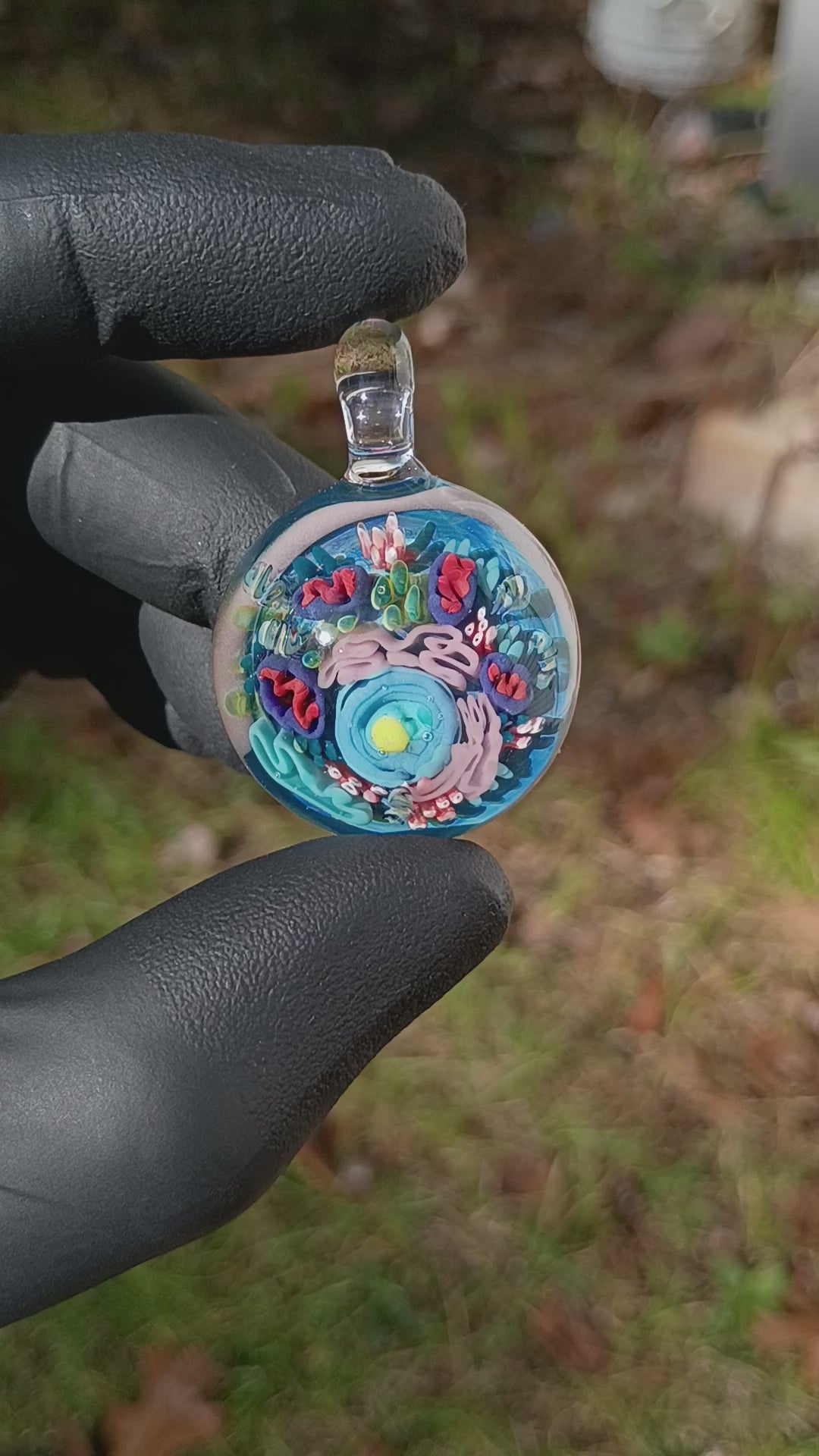 -How it’s made: I blow a glass bubble, draw in each little cellular structure, and carefully implode & flip it around so the clear glass magnifies every cellular detail. Each pendant is then kiln-annealed overnight, to strengthen the glass, and finally this one-of-a-kind pendant is ready to see the daylight!