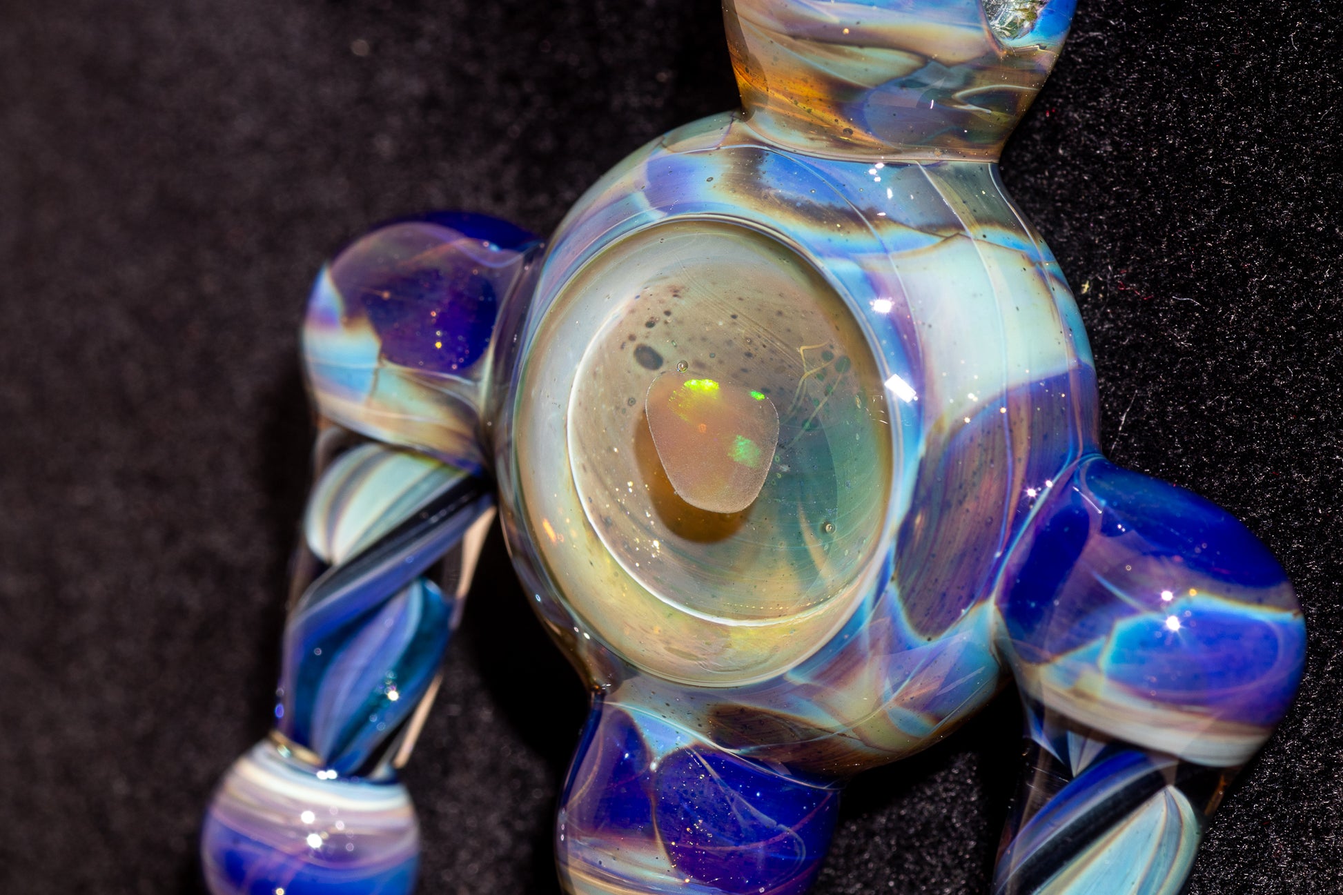 Ankh Eye Of Horus | Sculpted Glass Pendant with Encased Opal | Borosilicate Glass Necklace | Glass Charm Jewelry | Sparkle Necklace |