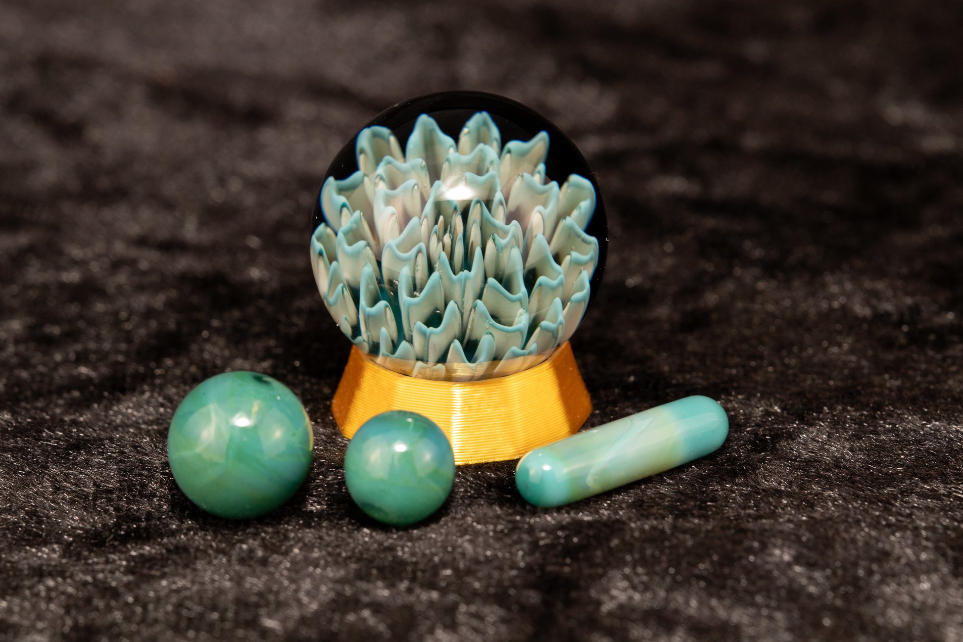 Dahlia Flower Marble Set | 25mm Handmade Glass Art Sphere with Matching Inserts | Collector Marble | Handblown Glass Decor