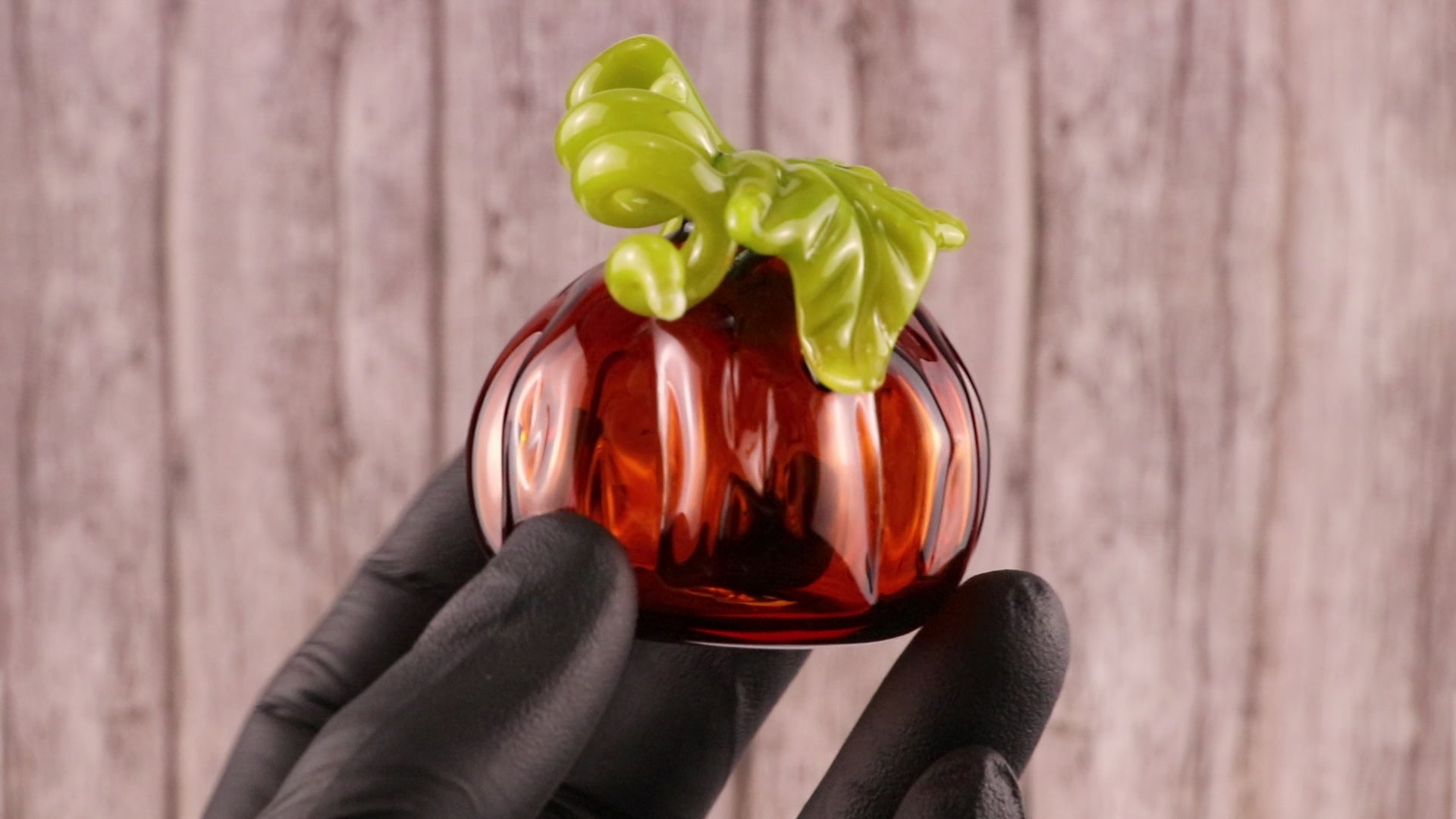 Glass Pumpkin #3 | Handblown Borosilicate Pumpkin | Autumn Leaves Decor | Halloween & Fall Art | OOAK Collectible Glass Pumpkin