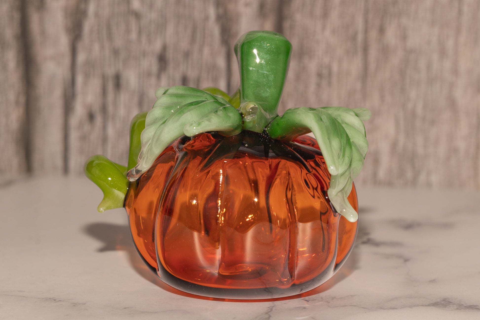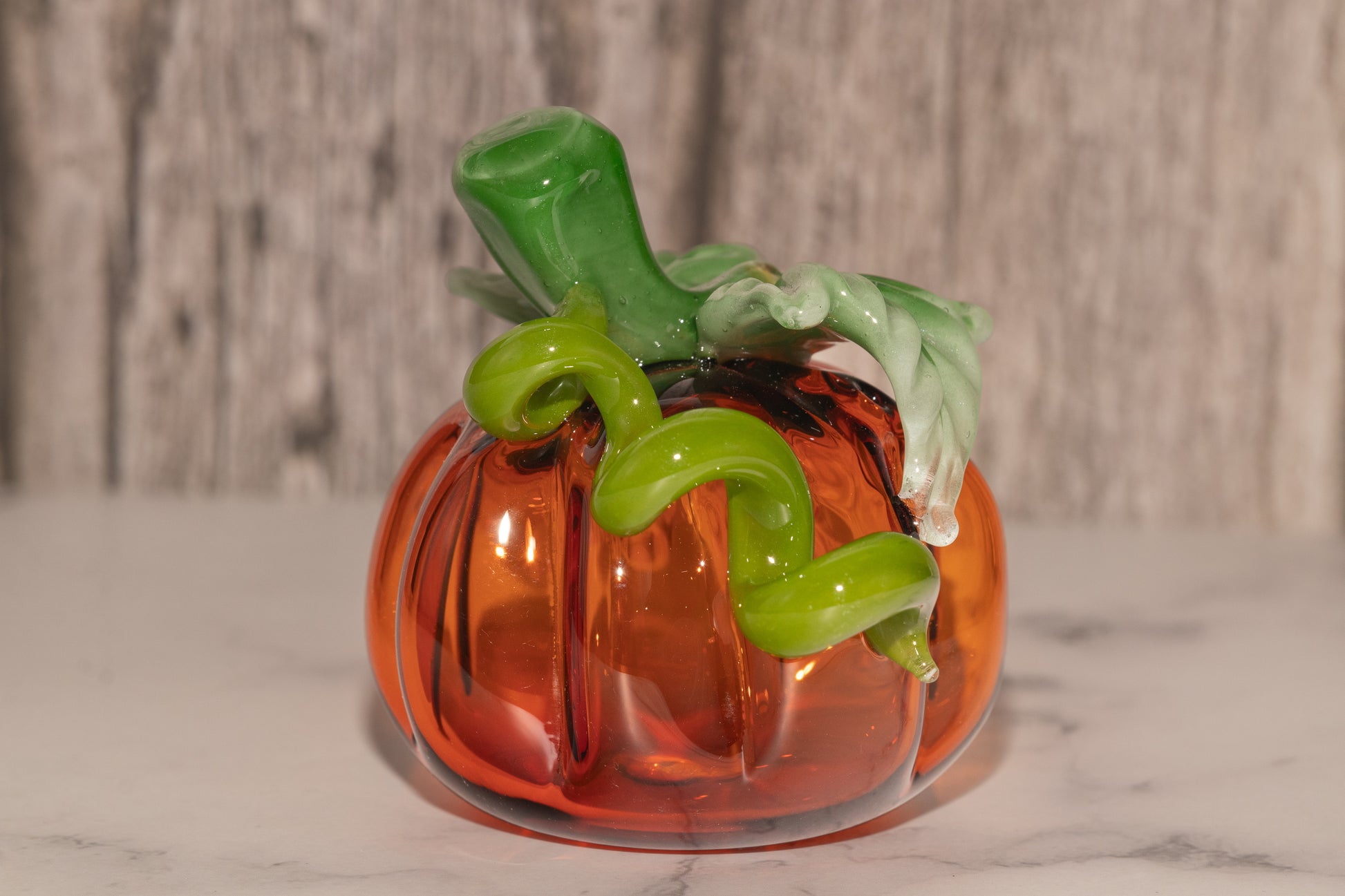 Glass Pumpkin #4 | OOAK Glass Pumpkin Sculpture | Fall Halloween Home Decor | Leaves Vine Detail | Handcrafted Seasonal Art
