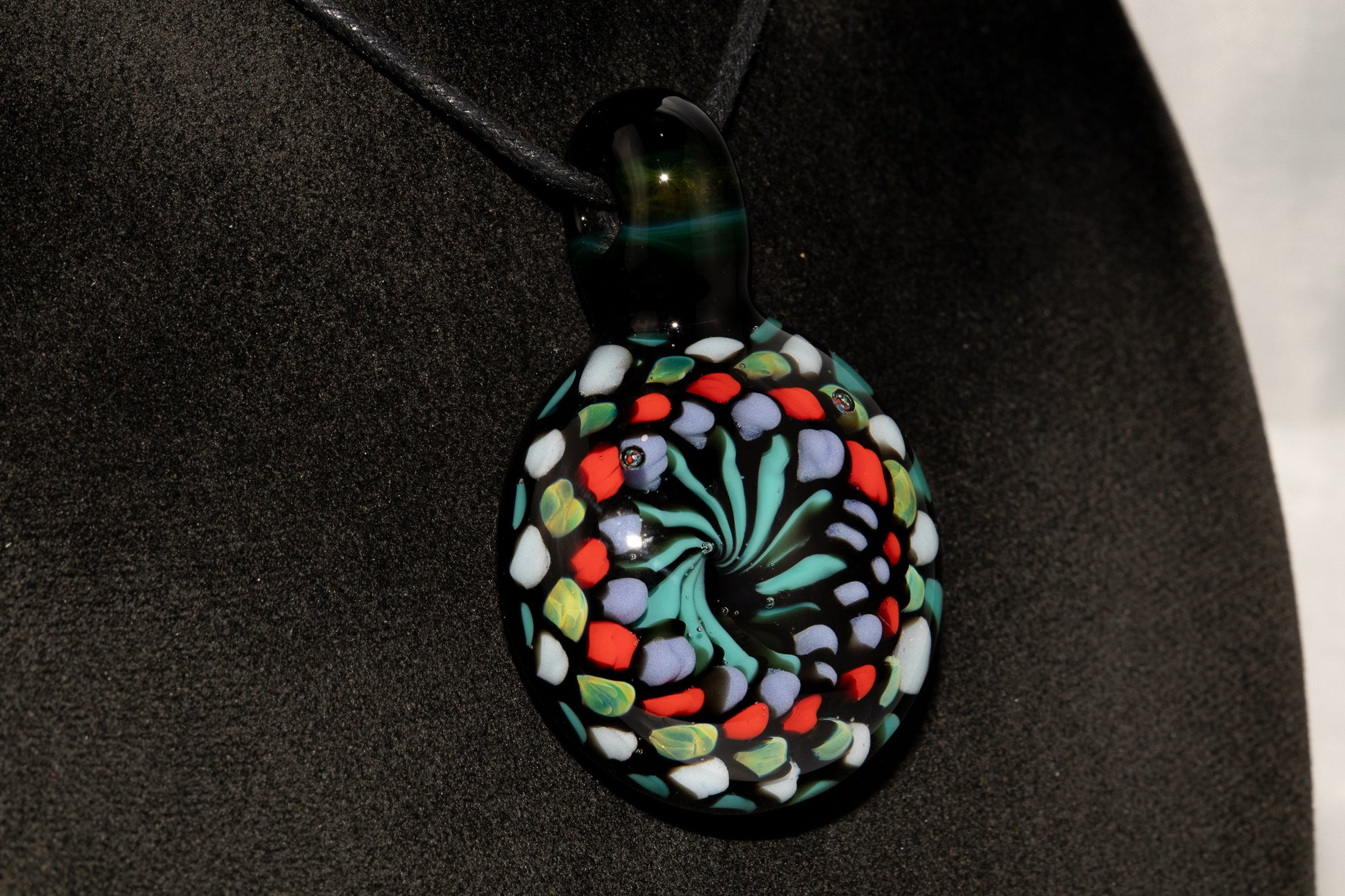 Large Mandala Pendant | Intricate Glass Fractal Pattern | Heady Multicolor Jewelry
