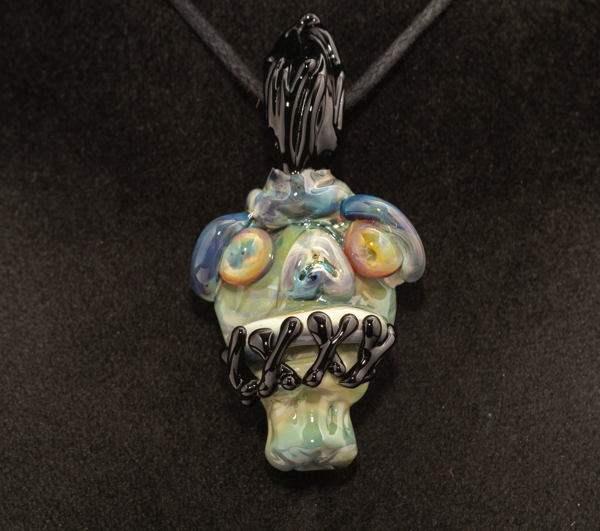 Shrunken Head Glass Pendant | Hand Sculpted Mysterious Relic | Eerie Explorer Curio Jewelry | Macabre Artistic Glass Art