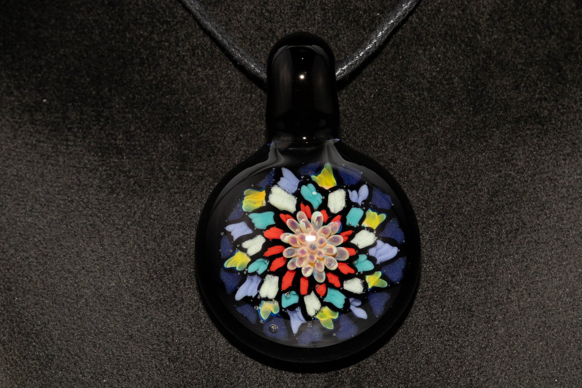 Unique Mandala Glass Pendant | Colorful Fillacello Design | Sacred Geometry Jewelry Art