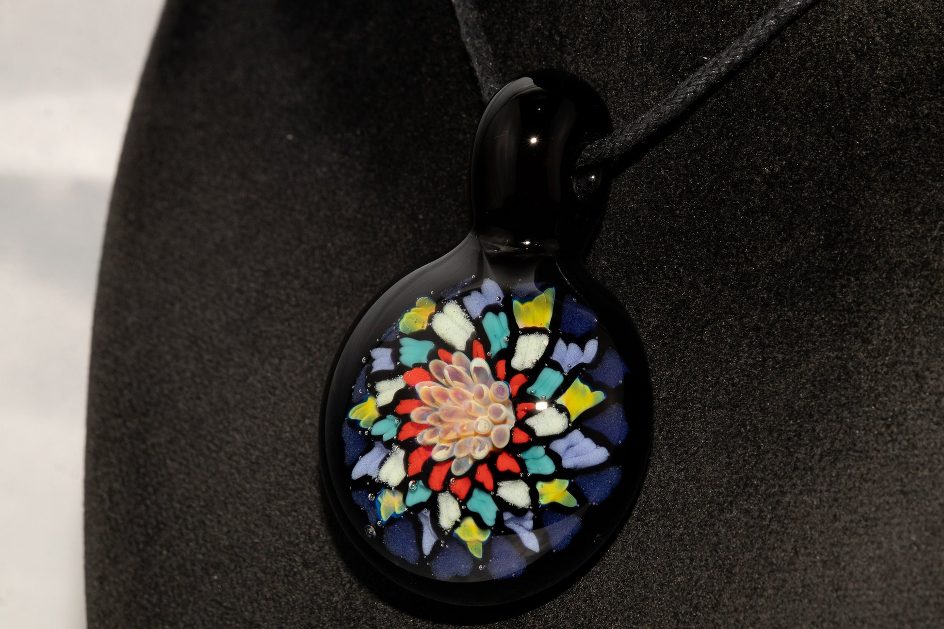 Multicolored Mandala Handmade Fillacello Glass Pendant – Large Statement Jewelry